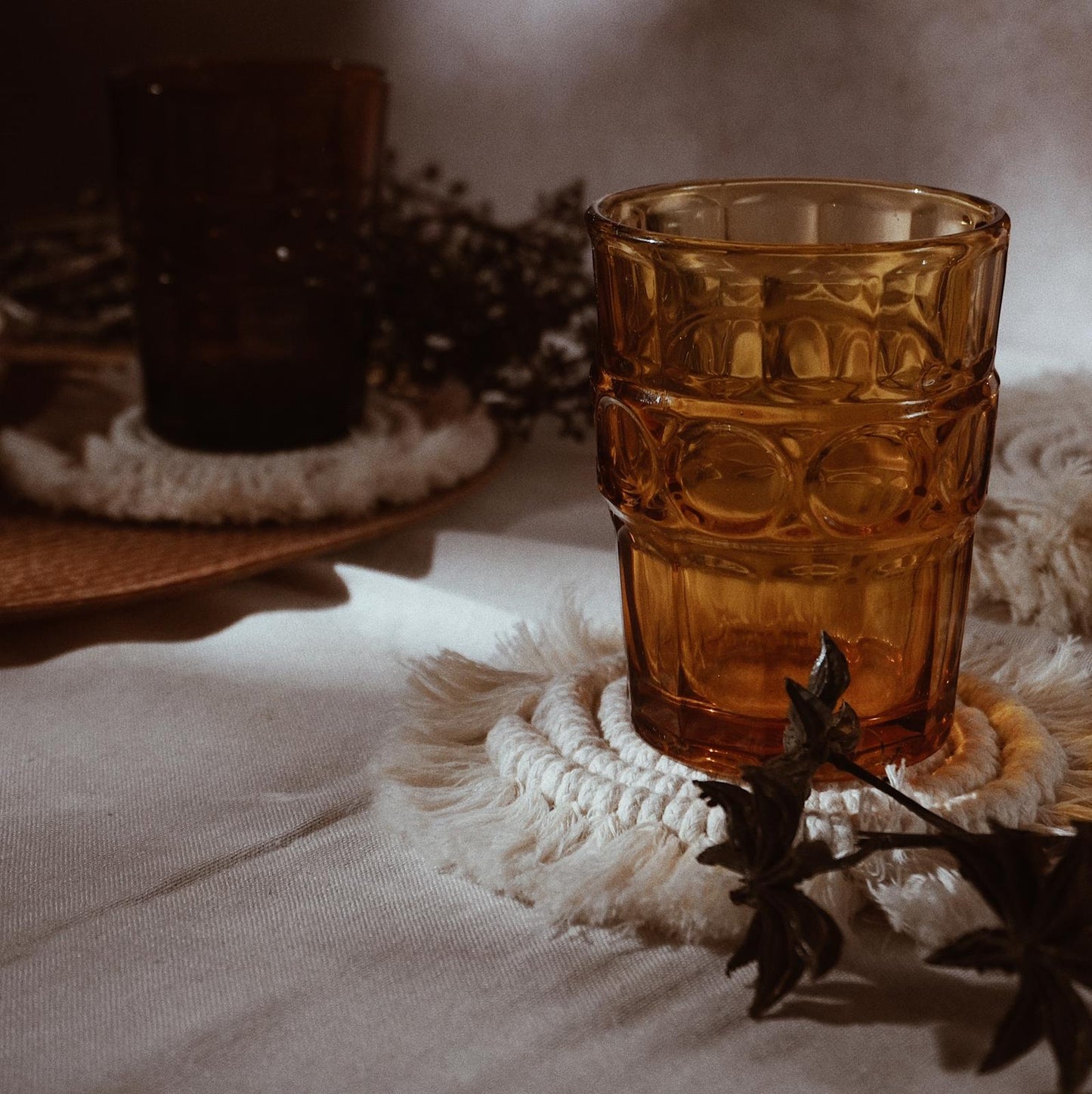 Descubre el encanto artesanal con nuestro set de 2 Posa Tutti de Macramé, diseñados para aportar un toque bohemio y sofisticado a tu hogar. Hechos a mano con algodón 100% natural en color crudo, estos posa vasos/copas/velas combinan funcionalidad y estilo en una sola pieza.
